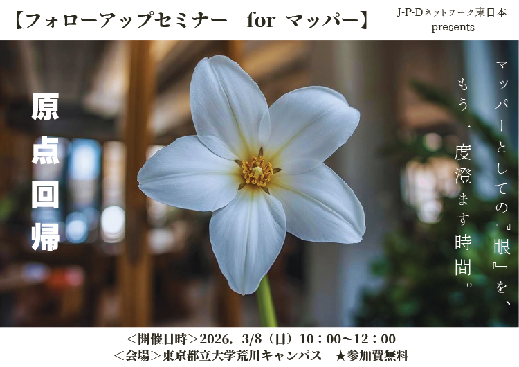 2024年3月23日(土)10:00〜16:30、東京都立大学荒川キャンパスにて、JPDネットワーク東日本presentsフォローアップセミナー「これに参加すれば勇気を出して踏み出せる… -