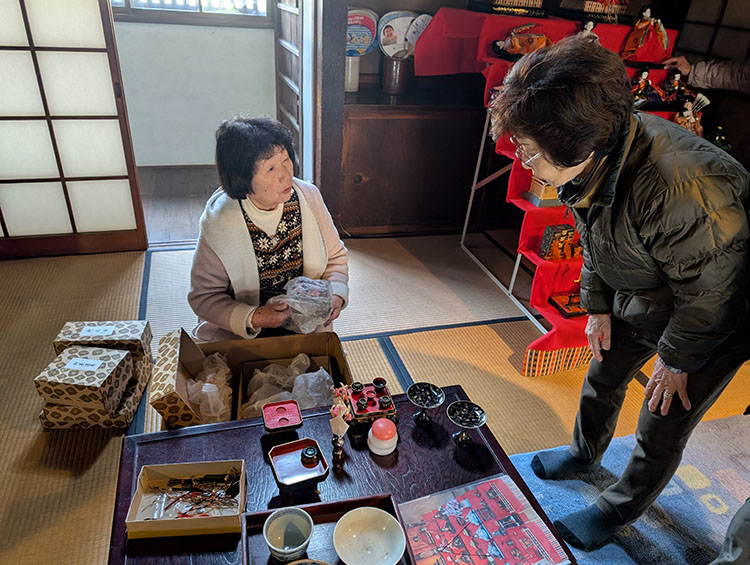 寒い中6飾りのお雛様を飾りましたが、手作りぜんざいの差し入れもあったりして、みんなで賑やかに飾りつけをすることが出来ました。七段飾りや御殿飾り、木目込み人形など様々なお雛様をご覧いただけます。